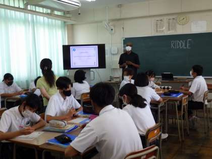 9月26日(月)昼からすこし暑くなってきました。子どもたちは頑張っています。3年生の数学と2年生の英語、2年生はC-NETの先生の授業です。