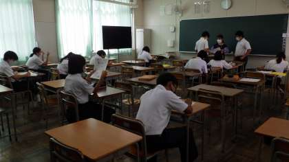 9月28日(水)1年生の英語、分割の少人数授業です。頑張ってます。