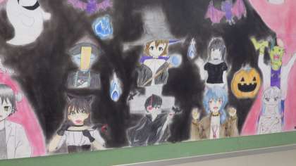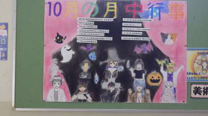 10月3日(月)階段踊り場に10月の月中行事が貼られています。美術部の皆さんありがとうございました。