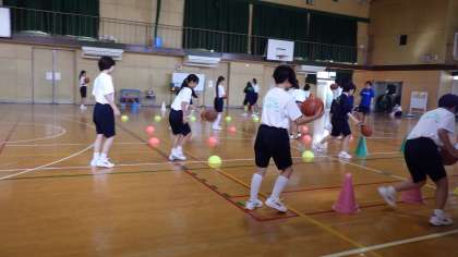 10月3日(月)1年生の体育、男子はハンドボール、女子はバスケットボール、頑張っています。