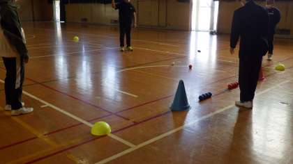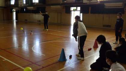 10月11日(火)みどり学級でボッチャを行いました。赤と青に分かれボールを投げて白いボールに近づけると得点になります。みんな楽しく活動しました。