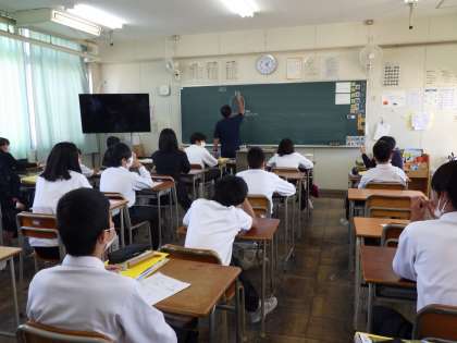 10月19日(水)素晴らしい青空が広がっています。子どもたちは頑張っています。1年生の英語、理科、技術の様子です。