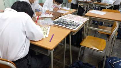 10月24日(月)今週の金曜日に迫った文化発表会に向けて1年生はモザイクアートです。かなり仕上がってきています。