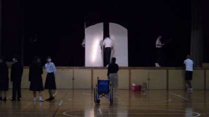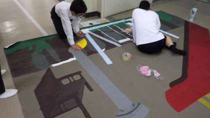 10月24日(月)今週の金曜日に迫った文化発表会に向けて2年生は劇です。背景画も完成に近づき、映像班も頑張っています。