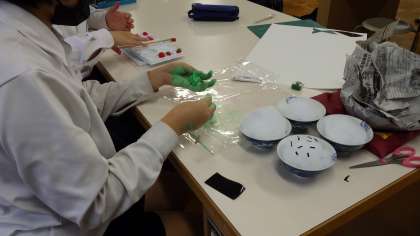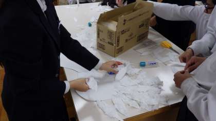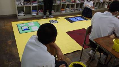 10月24日(月)今週の金曜日に迫った文化発表会に向けて2年生は劇です。背景画、小道具も頑張っています。