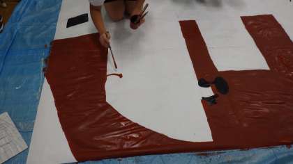 10月24日(月)今週の金曜日に迫った文化発表会に向けて3年生は劇です。格技室の外でも練習しています。背景画も頑張っています。