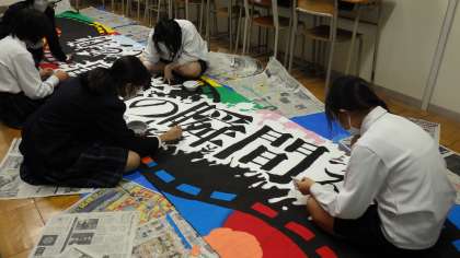 10月24日(月)美術部のみなさんの作成の横断幕が完成に近づいています。