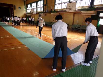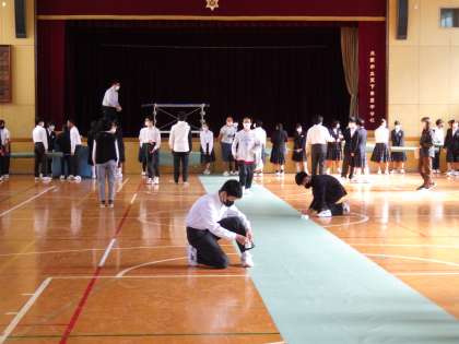 10月26日(水)金曜日の文化発表会に向けて2年生は会場準備をしています。