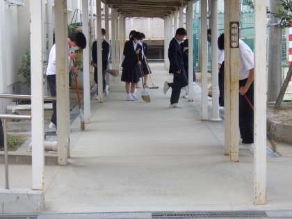 10月27日(木)2年生は明日の文化発表会に向けて体育館周りの掃除をしています。