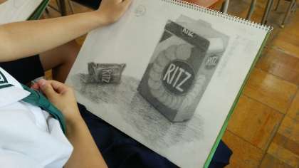 美術部の活動のようすです。鉛筆を使ったデッサンに取り組んでいます。観察力と描く技術が要求される緻密な作業です。