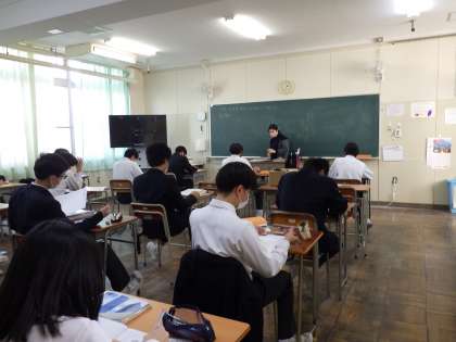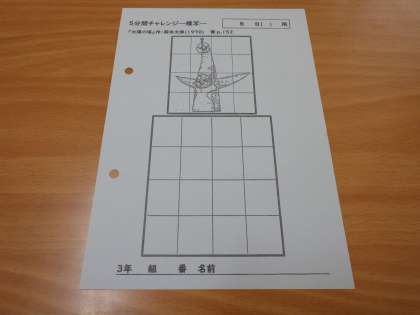 11月10日(木)3年生の美術です。5分間チャレンジ。太陽の塔を描いています。