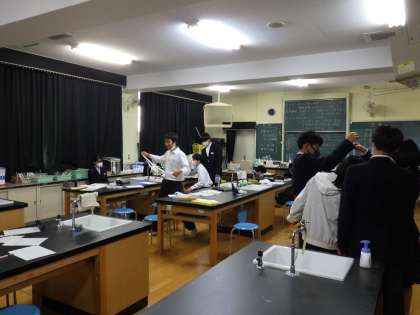 11月10日(木)3年生の理科の様子、理科室での実験です。