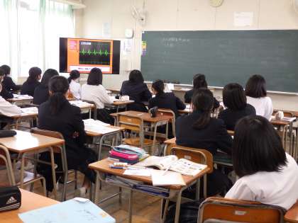 11月14日(月)2年生の理科と保健の様子です。保健ではAEDについて勉強しています。