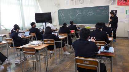 11月18日(金)3年生の数学、パソコンを使っての授業です。