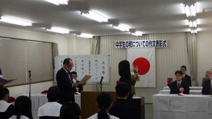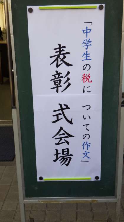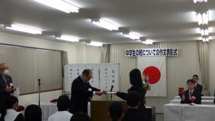 中学生の税についての作文表彰式
