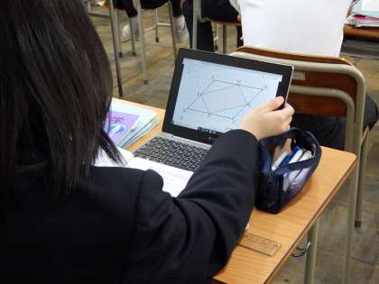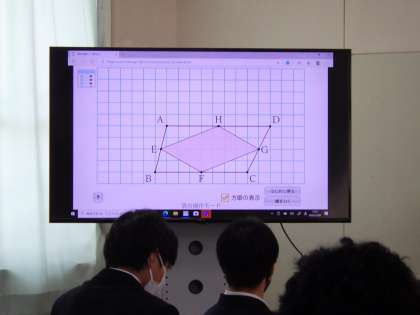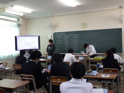 12月2日(金)3年生の数学、パソコン、電子黒板などICTを活用した授業です。