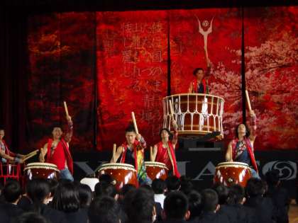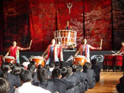 12月2日(金)芸術鑑賞を行いました。倭の皆さんの和太鼓の演奏、心に響く素晴らしい演奏でした。感動的な演奏の様子です。