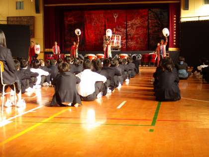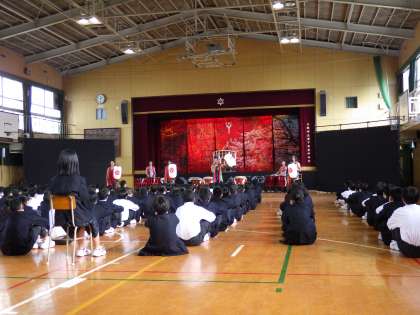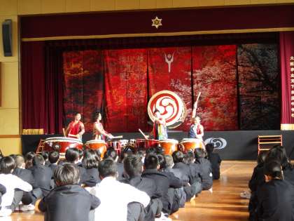 12月2日(金)芸術鑑賞を行いました。倭の皆さんの和太鼓の演奏、心に響く素晴らしい演奏でした。感動的な演奏の様子です。