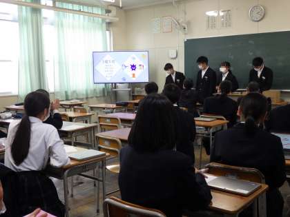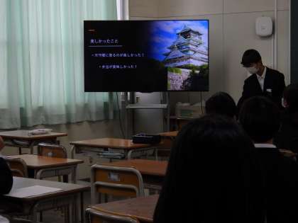 12月15日(木)1年生は大阪城への校外学習、フィールドワークの発表会を行っています。