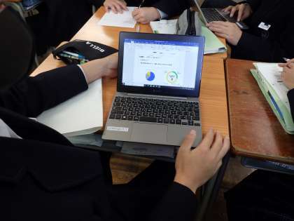 12月16日(金)3年生国語、パソコンを使って調べ学習をしています。