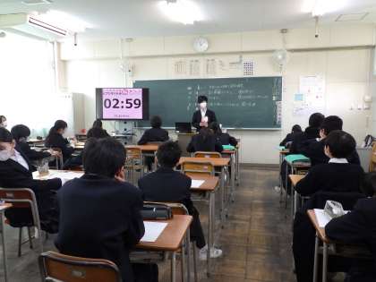 12月16日(金)1年生の国語、ビブリオバトルです。頑張っています。