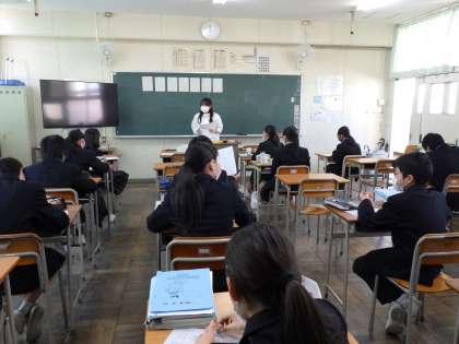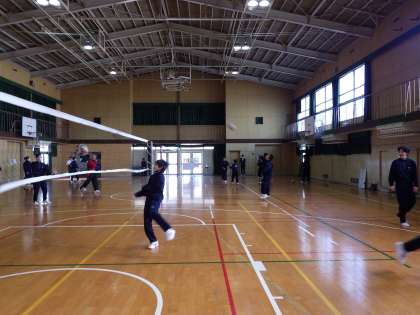 1月⒓日(木)今年初めての授業です。1年生の数学、体育の様子です。体育は男子がバレーボール、女子は長距離走です。
