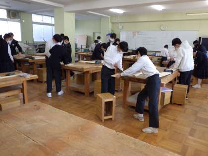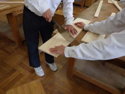 1月17日(火)1年生理科と技術の様子です。技術は本立てを作っています。