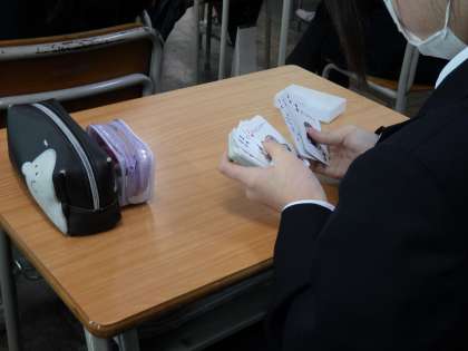 1月19日(木)1年生はキャリア教育の一環として「SP」トランプを行いました。講師の先生をお招きし、トランプを使って自分自身のパーソナリティー(個性)を見つけます。一所懸命取り組んでいました。