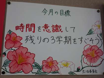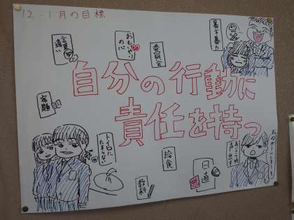 1月25日(水)早いもので1月もあと1週間となりました。1月の目標をもう一度確認しましょう。2年生と1年生です。
