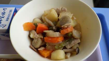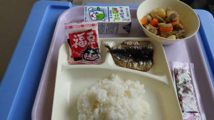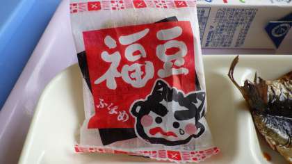 2月1日(水)の給食は節分の行事献立、いわしのしょうがじょうゆかけ、含め煮、いり大豆、焼き海苔、ご飯、牛乳です。いわしのしょうがじょうゆかけは蒸し焼きにしたいわしにしょうがじょうゆ、砂糖、みりんなどで味をつけています。含め煮は豚肉、じゃがいも、ダイコン、にんじん、ごぼう、さんどまめ、しめじが入っています。おいしかったです。ごちそうさまでした。