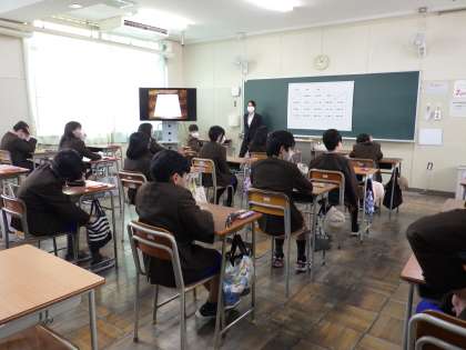 2月6日(月)天下茶屋小学校、橘小学校の6年生のみなさんに来ていただき児童見学交流会を行いました。数学、音楽、理科の様子です。