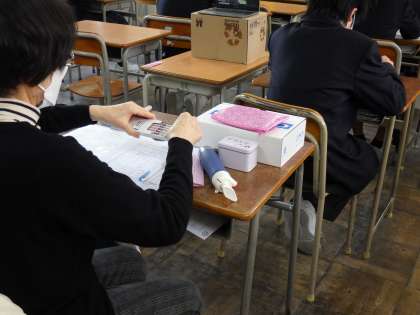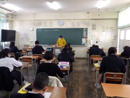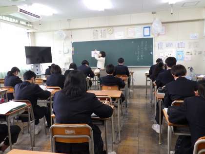 2月8日(水)1年生の理科の時間です。学校薬剤師の先生に来ていただき教室の空気検査を行っていただいています。下の写真は国語の時間の様子です。