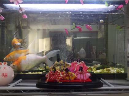2月8日(水)管理作業員室の天下茶屋水族館がお雛様と合格祈願、応援してくれています。