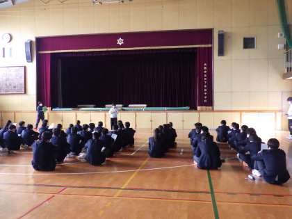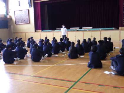 2月9日(木)6時限目に3年生は、明日の私立高校の入学試験に向けての事前指導を行いました。全体では持ち物などを確認し、その後、各学校に分かれて集合時間や交通経路を確認しました。今日はしっかり体調を整え、明日はベストを尽くしてください。