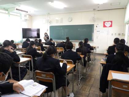 2月14日(火)1年生家庭科、数学の様子です。頑張っています。