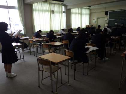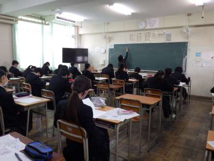 2月20日(月)1年生の音楽、家庭科、男子の保健です。音楽は「涙そうそう」の歌のテスト、保健は多目的室で授業をしています。