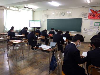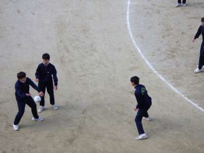 2月21日(火)3年生の数学、体育の様子です。体育はラグビーボールを使ってタッチフットボール。楽しそうです。