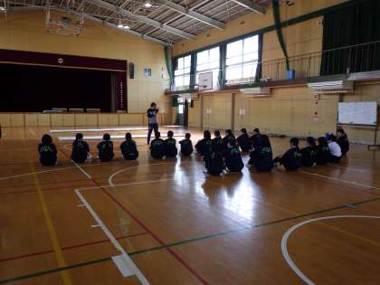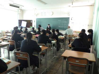 3月6日(月)1年生の授業の様子です。1年3組の英語、C-NETの先生の授業です。1組2組の体育、男子はサッカー、女子はマット運動です。
