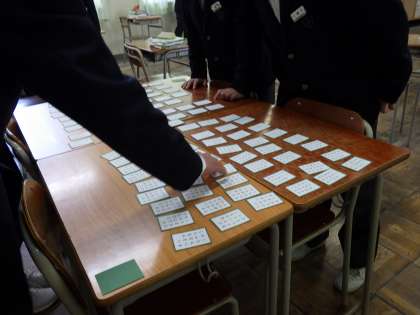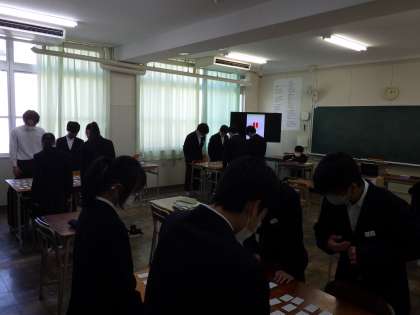 3月6日(月)3年生の国語、百人一首を行っています。楽しそうに授業に参加しています。