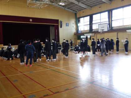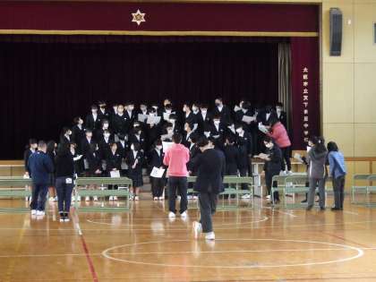 3月7日(火)3年生は卒業式に向けの取り組みが始まりました。卒業の歌の場所の確認です。