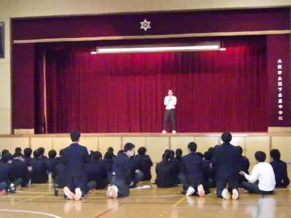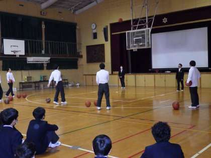 3月8日(水)3年生は体育館でお別れ会を行いました。楽しい時間でした。レク係の皆さんありがとうございました。有志の皆さんの登場です。