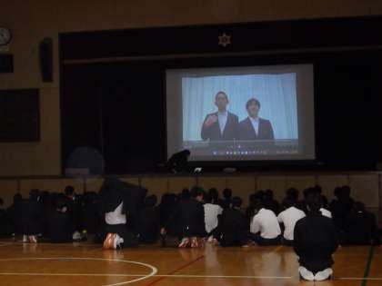 3月8日(水)3年生は体育館でお別れ会を行いました。楽しい時間でした。レク係の皆さんありがとうございました。有志の皆さんが頑張っています。