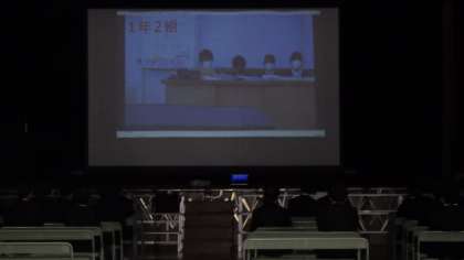 3月9日(木)生徒会主催、卒業生を送る会の様子です。体育館で各学年からのメッセージ動画を鑑賞した後メッセージカードが披露されました。