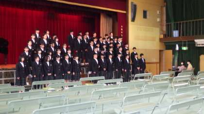 3月13日(月)3年生は卒業式に向けての予行です。一人一人がしっかりと目を見て卒業証書を受けとっていました。