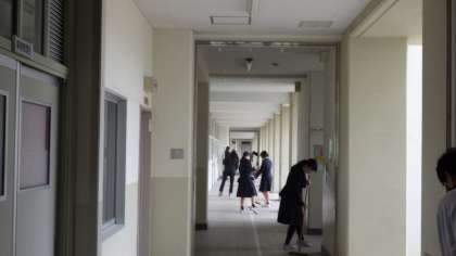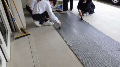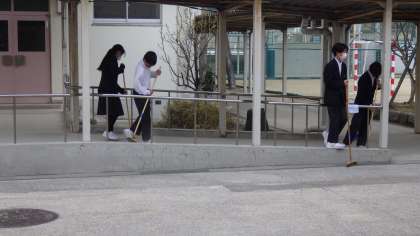 3月13日(月)明日の卒業式に向けて1年生は体育館の周りや1階廊下の掃除をしています。