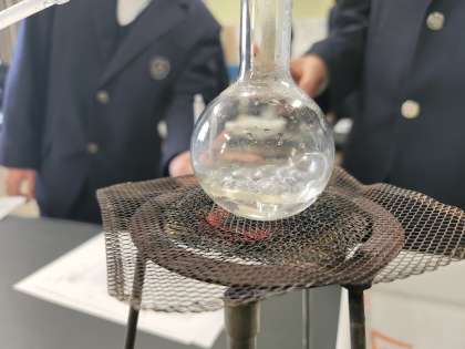 本日は1年1組が蒸留の実験を行いました。