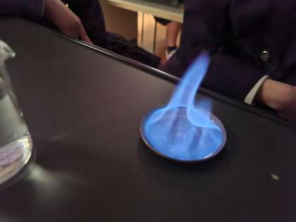 ガスバーナーの火を消したとき、水が逆流してフラスコが割れてしまうハプニングがありましたが、怪我はなく、実験も終わっていたためすべての班が実験を終えることができました。45分授業だったため、2年、3年の理科の先生方にも手伝っていただきました。