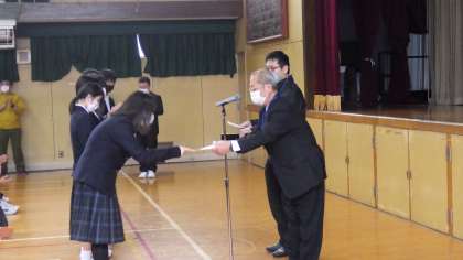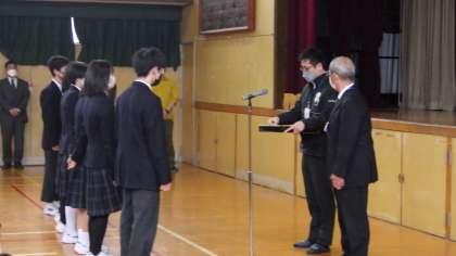 3月24日(金)令和4年度の修了式を行いました。修了式の前に決められた冊数の本を読んだみなさんに西成区長さんより表彰をいただきました。