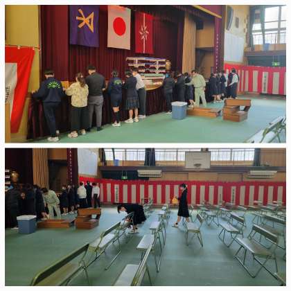 会場の準備も終わりました。本日、お手伝いに来てくれた生徒の皆さん、ありがとうございました。
