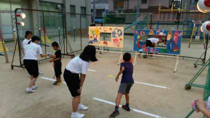 天下茶屋小学校で行われた夜店まつりに、生徒会役員6名が、PTAの出し物のお手伝いで参加しました。小学生や小さい子どもたちに優しく接し、地域からもお褒めの言葉をたくさんいただきました。天下茶屋中学校生徒会、頑張っています!!